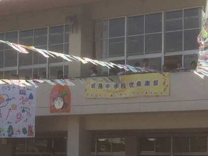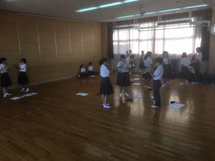 5日.吹奏楽部が城東幼稚園で入場行進の音楽演奏を行いました。地域連携の一役を担っています。朝早くから、会場入りして、音合せしていました。
