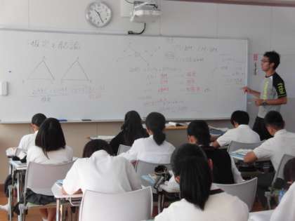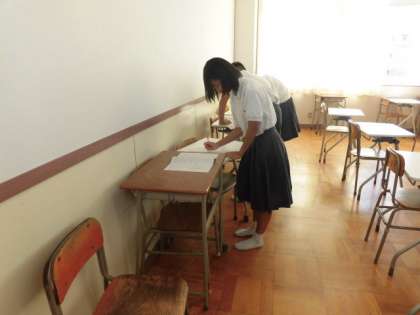 先生の指示に従ってプリントの答えあわせを各自で行っています。