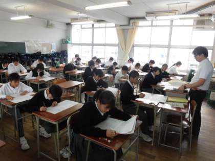 チャイムが鳴ると一生懸命に問題に取り組んでいました。