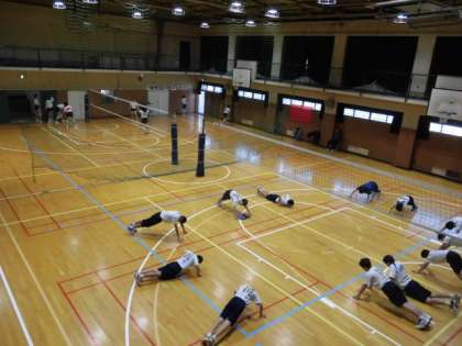 今日は、グランドで、野球とサッカー、体育館では、バレーボールが練習していました。