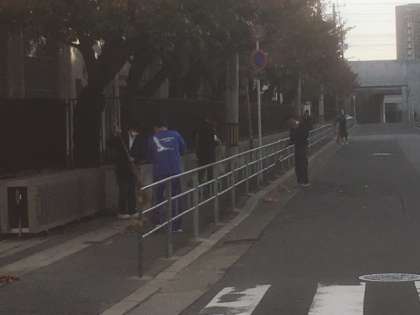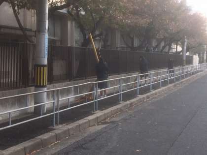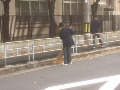 19日、校舎横の桜の落ち葉が多くなってきました。朝から、水泳部の生徒が清掃しています。