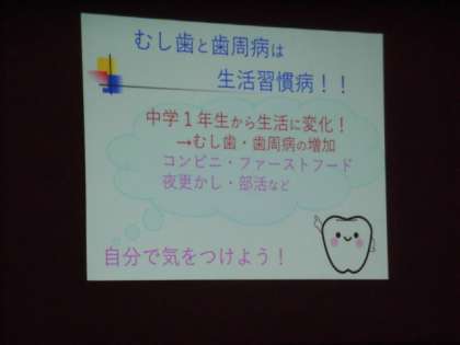 歯科校医先生から歯と口の健康についての授業を受けました。