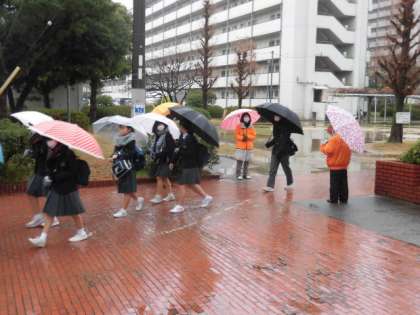 雨の日でしたが、生徒たちに声を掛けていただきました。