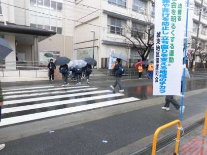 学期初めに、保護司会の方があいさつ運動に来られます。