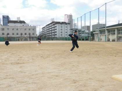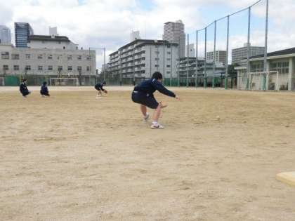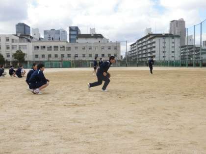 30日(木)、グランドで3年生が体育の授業を行っていました。