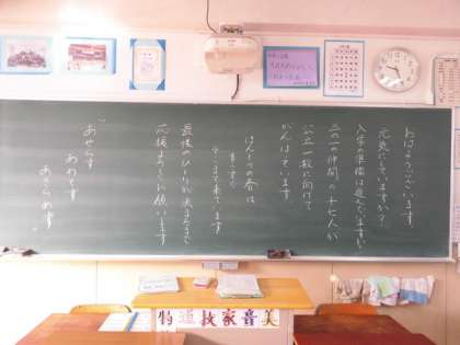 あるクラスでは、黒板に担任からのメッセージが書いてありました。