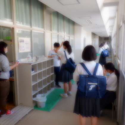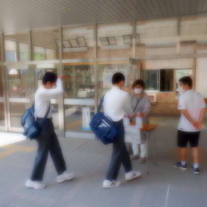 検温をして登校した生徒はそのままグランドにてクラス発表を行います。