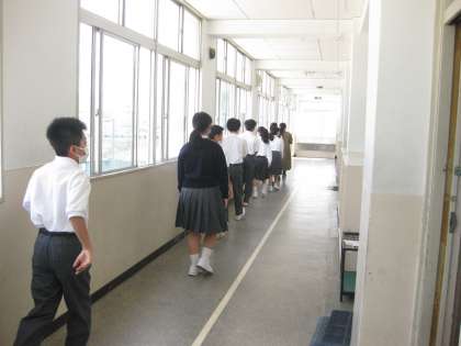 本日は1年生の登校日です。出席番号順で3交代制(Aグループ9:00〜、Bグループ11:00〜、Cグループ13:30〜)での登校となっています。
