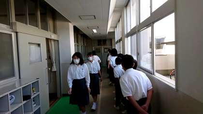 本日の取り組みは、学級でのプリント学習、多目的室を利用しての聴力検査等です。また、入学して突然の休校ということもあり中学校生活に様々な不安もあることかと思われる中で、担任の先生による教育相談(担任の先生と個々に話しをする活動)も行われています。