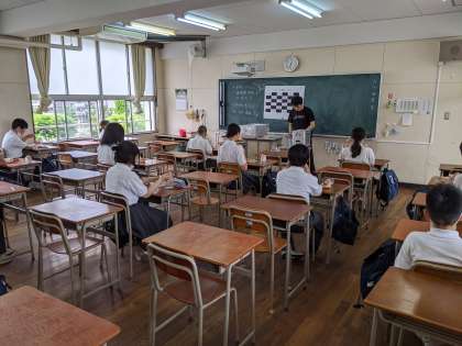午後の部は給食から始まります。みんな前を向いて静かに食べています