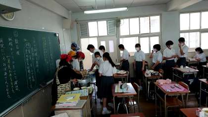 子どもたちも、パンと牛乳と少しの袋ものという昼食から、ごはんにおかず、汁物、牛乳といった昼食ということで、しっかり食べています。感染症対策も必要でなかなか大変な時期ですが、頑張って乗り切りましょう!
