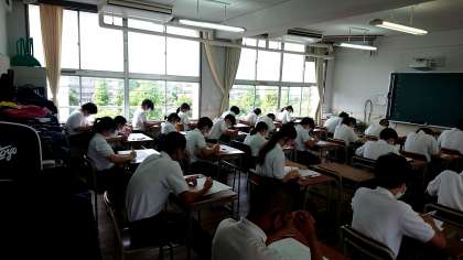 城陽中学校では、本日1限から5限までの時間を1・2年生は到達度テストとして、5教科の授業内容のテストを。3年生は進路選択を控えているため、実力テストを実施しています。