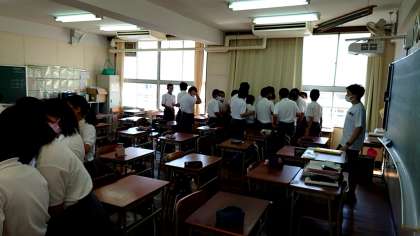 本日は、放送による全校集会が行われ、校長先生のお話に続いて、教育実習生の紹介と代表によるあいさつが行われました。本日より2週間、国語科、社会科、英語科、音楽科の4人の実習生が教員を目指して城陽中学校の生徒たちと活動していくことになります。しっかり頑張ってください!
