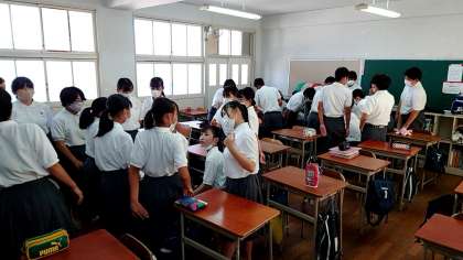 全校集会終了後の1限目に2年生は、学年別で行われることとなった運動会のメンバー決めをしました。体育委員を中心に自分たちで話し合って決定しています。今やれる最大限の取り組み、行事を実施していきますので、保護者の皆さまもご理解とご協力よろしくお願いいたします。