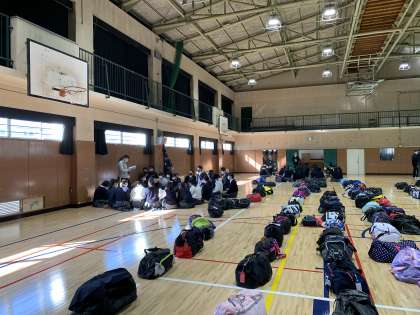 学級代表の指示のもと、各自大きなカバンに入れた荷物の確認をしました。
