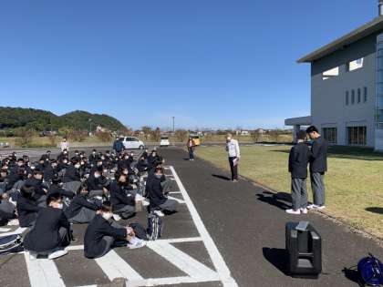選択体験を始めるにあたって、代表生徒の司会で開会式が行われています。