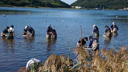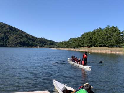 しじみ漁とボート体験をしています。多くが初めての経験とあってすごく楽しんでいます!