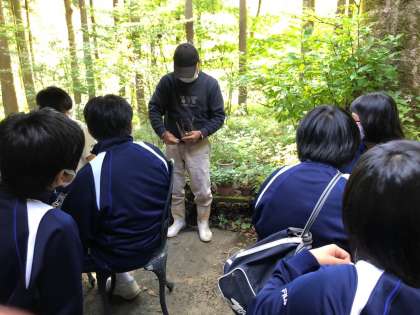 こちらは、木のつるを使って入れ物などを作成する「つる細工」体験の様子です。地元の方が見本を見せながら丁寧に説明してくださっています!