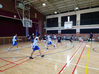 大領中学校との練習試合の様子です。「試合の勝ち負け以上に、課題への意識を持ってゲームすること」との指示がされました。12月に始まる大会に向けていい練習試合の内容となりました。