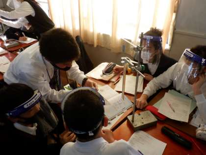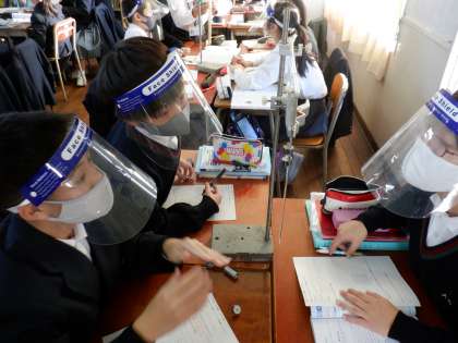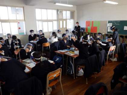 1年生は理科のばね実験が行われました。感染症の拡大予防のために、