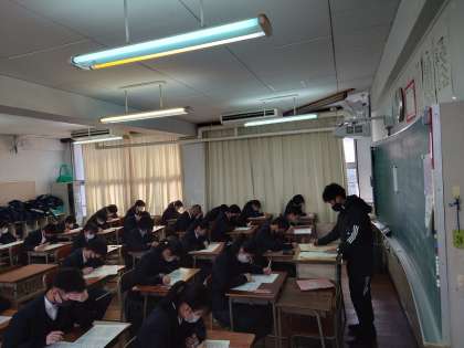 3年生は1月に学年末テストが終えています。本日は公立高校一般選抜の出願を午後に控えているので、3限目までは授業が行われています。