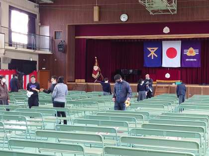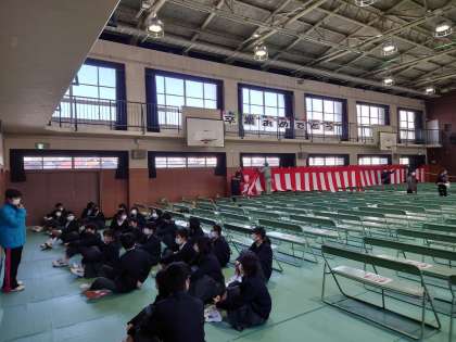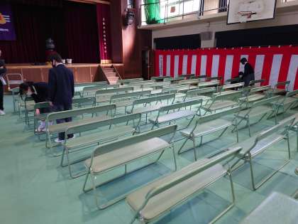 本日、午後から1・2年生の係生徒は卒業式の準備を行っています。1年生は清掃を、2年生は式場の準備を担当しました。主役である3年生の門出を祝うために、しっかりとつとめをはたしてくれました!