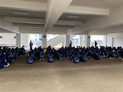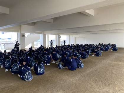 無事に城陽中学校に帰ってきました。ピロティに集合し連絡等が行われました。
