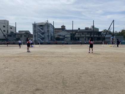 本日ソフトテニス部は、大宮中学校で開催されているブロックの1年生大会に出場しています。