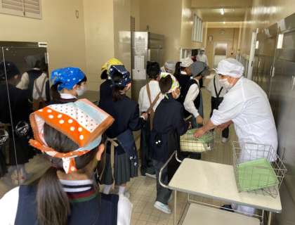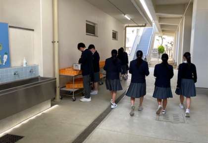 特に新1年生は、小学校とは同じであって違う給食(メニューは同じでもパンやおかずの量が多いです)。新しい仲間と緊張しながらも、しっかり準備、喫食、後片付けができていました。