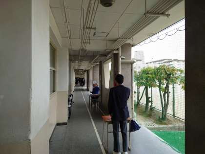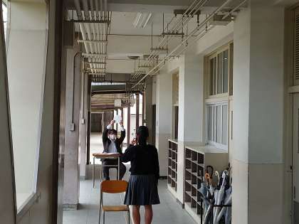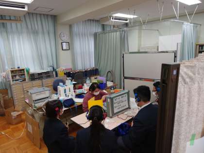 廊下では、視力検査が行われています。その時に教室では、学年ごとに取り組みが。