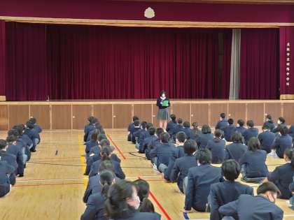 本日6限目3年生は、修学旅行に向けての取り組みとして、先行して活動が始まっている「修学旅行実行委員」のメンバーによる決意表明が行われています。