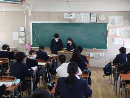 このあと、修学旅行実行委員会で作成した便りを使ってのアンケート、バス座席の決定まで行うことになっています。