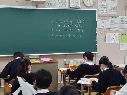 1限目が国語、2限目が数学、3限目に生徒質問紙というアンケート調査が行われます。その後、4限目から6限目が通常授業ということで、忙しい1日となりますが、頑張ってください。