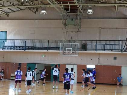 昨日の練習予定が暴風警報発令によって中止となったことで、男子バスケットボール部にとっては、連休明け早々の練習試合となりました。