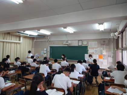 本日3年生は1限目の特活の時間を使い、来月予定されている修学旅行と、来週金曜日に実施される出前授業に向けた取り組みを行いました。