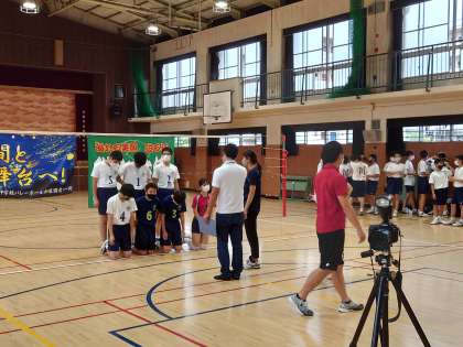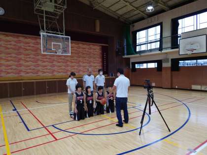 写真は男女バスケットボール部とバレーボール部の撮影の様子です。