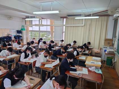 本日城陽中学校では、1・2年生が課題テスト、3年生が実力テストに取り組んでいます。1・2年生は、夏休みの課題で学んだことや、1学期の復習を中心に出題されます。