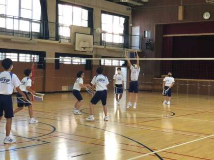 写真1枚目は大阪夕陽丘学園高校の先生による「enjoy!Newスポーツ」です。その名の通り、通常のバレーボールとは異なり手元のネットを上手く使って試合をします。