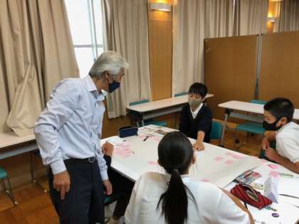 写真2枚目は常翔学園高校の先生による、「企業探求授業」です。グループに分かれ、ふせんを用いてアイディアを出します。