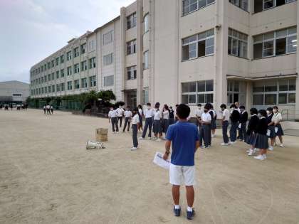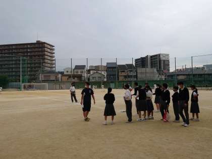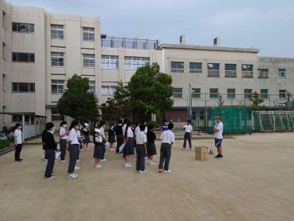 1回目の係打ち合わせでは、担当の先生から自分たちの係の仕事について、そして出場する種目の確認などが行われました。今回の打ち合わせでは、いつ、どの場面で仕事を担当するのかの確認、そして実際運動場でやり方の練習などを行いました。