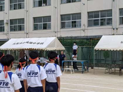 少し小雨が降る中ですが、無事に1年生の運動会も開会式、ラジオ体操が始まりました。