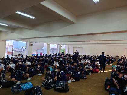 修学旅行実行委員のみなさんを中心に出発式がすすめられています。