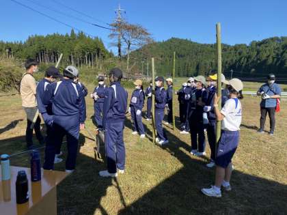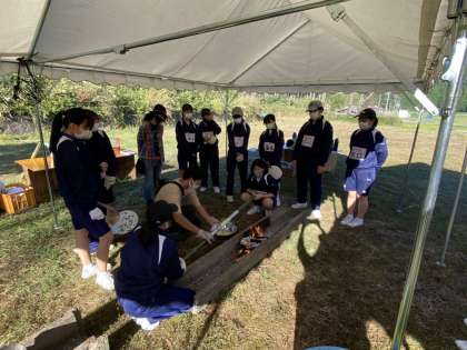 大きな竹を使って、バームクーヘン焼きはじめました。「早く食べたぁ〜い!」の声が聞こえてきます。