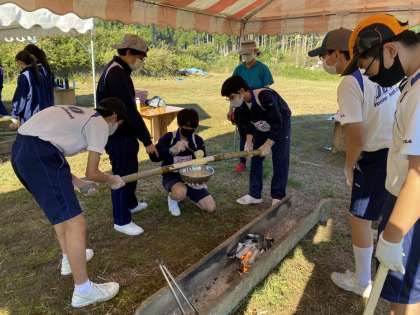 修学旅行 里山体験「バームクーヘン作り」2