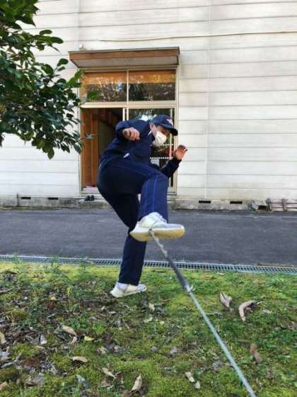 痕跡探しに続いて、ワナのかけ方を教わりました。実際にかかってみた人もいました。かかった時は靴を脱いで逃げましょうとのことです。