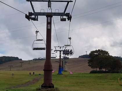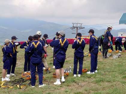 リフトで山の上まで登ります。そして、ヘルメットやハーネスをつけてジップラインの準備がすすめられています。