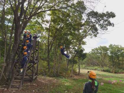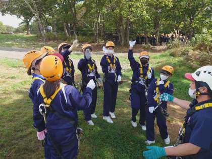 いよいよ、ジップラインの実践がスタートです。「速い〜」や「楽しい〜」といった歓声があがっています。みんなすごくいい顔です!