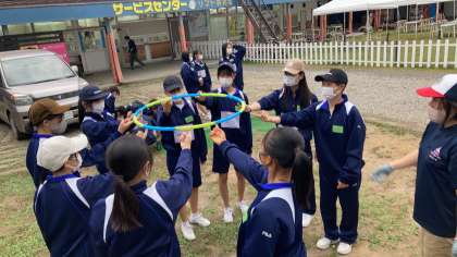 ジップラインを終えた班から、インストラクターさんの指示でチームビルディングの取り組みが始まりました。飽きさせない活動が目白押しで、みんな満喫しています!