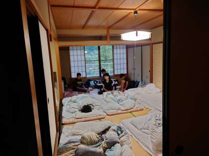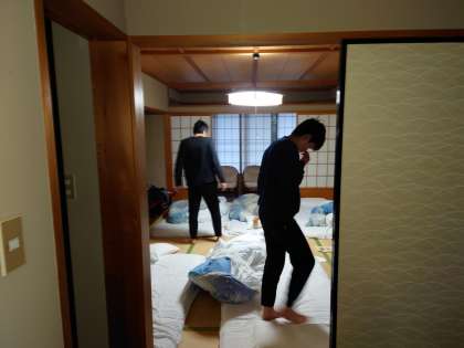 6時30分となりました。起床の時間です。実行委員会の指示のもとで、標準服など飛騨高山市内散策の準備と、帰るためのボストンバックの準備はできているはずです。なので、このあとの朝食と退館式の会場「吉田川」に向うための身支度を済ませるだけかと思います。眠たい表情がたくさん見られますが、しっかりと行動してください。