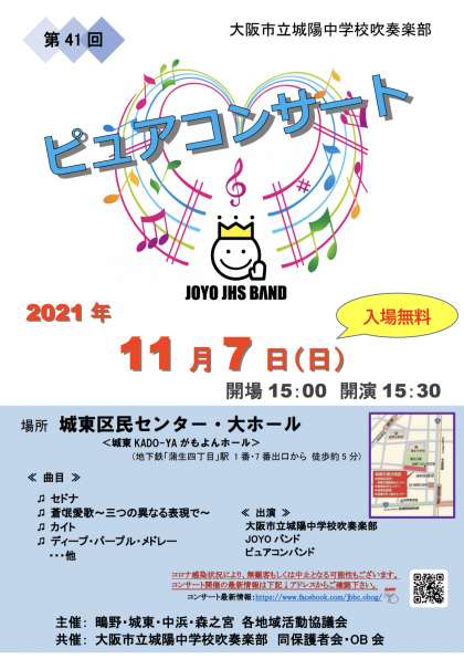 11/7(日)、城東区民センター大ホールにて、第41回ピュアコンサートが行われます。